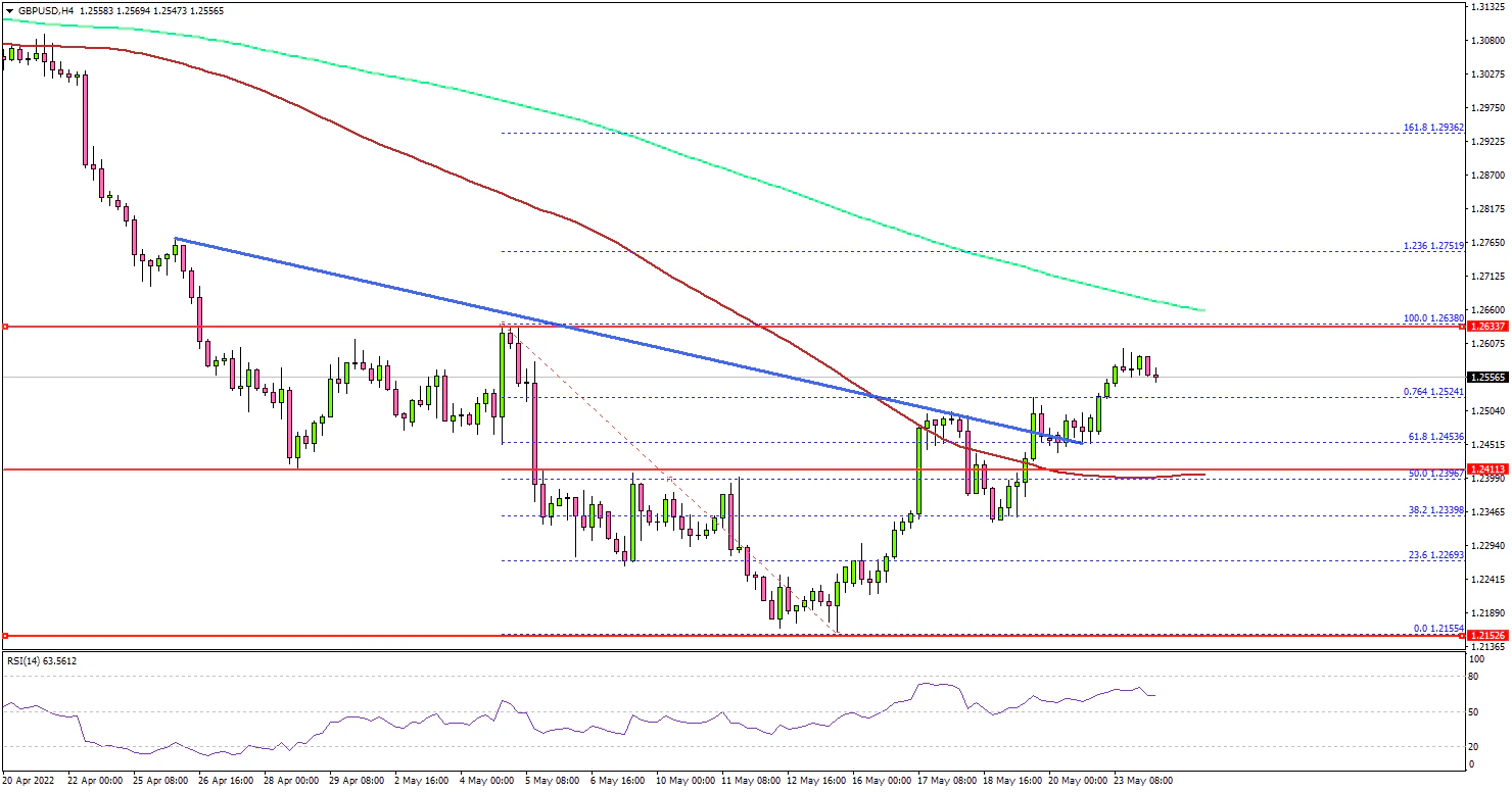 Looking at the 4-hours chart, the pair remained well bid above the 1.2200 before there was a recovery wave. There was a clear move above the 1.2500 resistance zone and the 100 simple moving average (red, 4-hours).