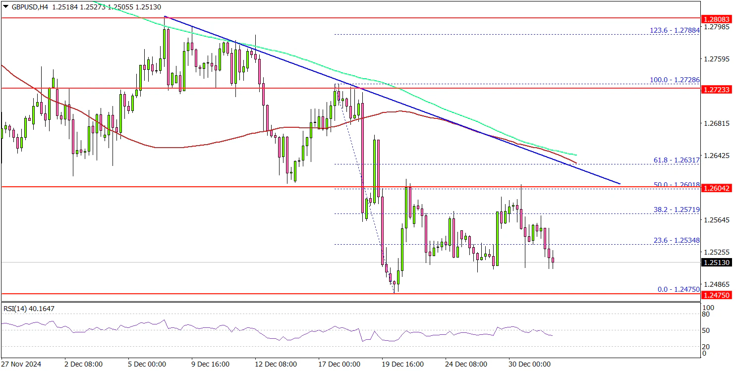 - A major bearish trend line is forming with resistance at 1.2600 on the 4-hour chart.