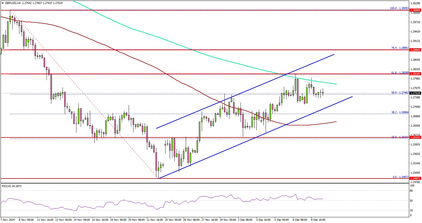Looking at the 4-hour chart, the pair surpassed the 50% Fib retracement level of the downward move from the 1.3009 swing high to the 1.2487 low. The pair recovered above the 1.2720 resistance level and the 100 simple moving average (red, 4-hour).