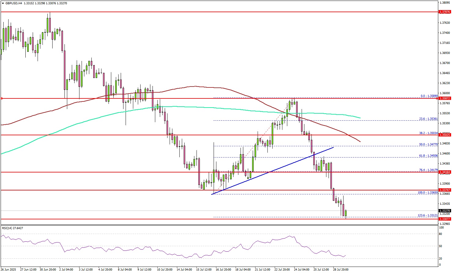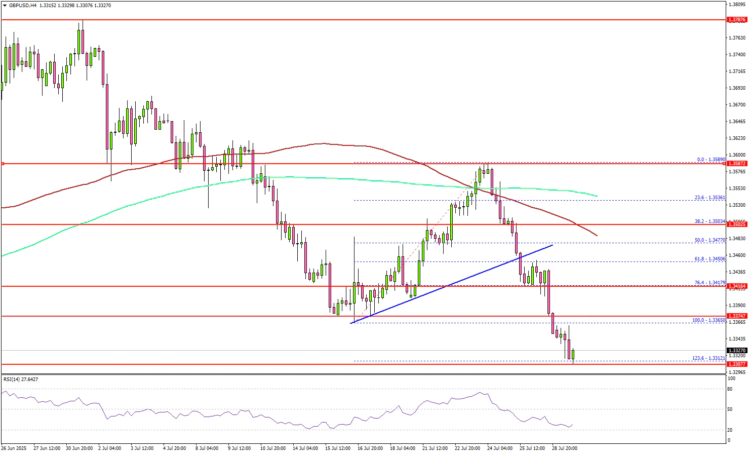 The next key support sits near 1.3280. Any more losses could send the pair toward the 1.3220 support zone. On the upside, the pair now faces resistance near the 1.3375 level. The next key resistance sits near the 1.3420 level.
