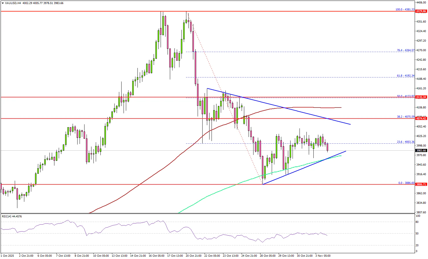 Gold prices corrected some gains and traded below $4,000 against the US Dollar. It even tested $3,885 before starting a consolidation phase.