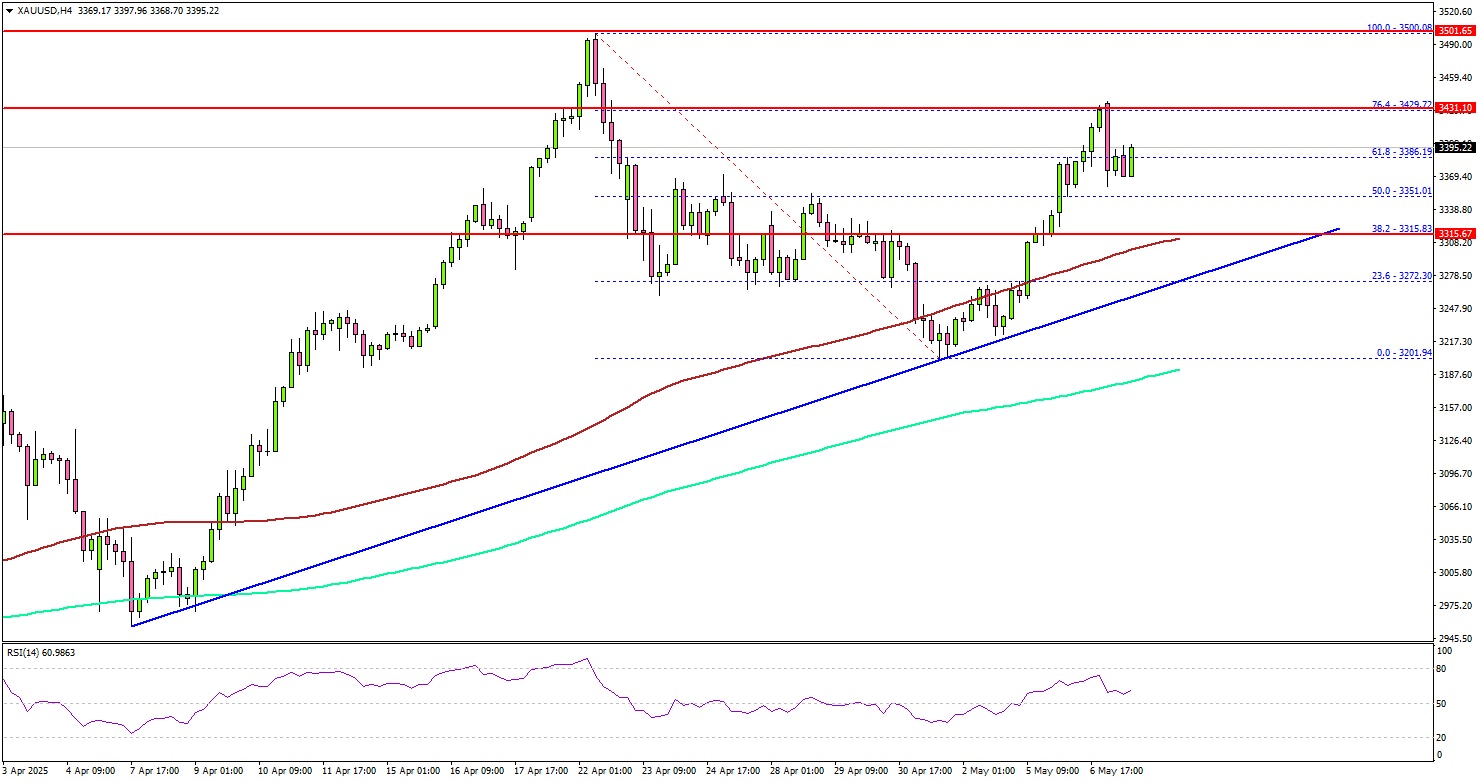 Gold prices remained supported above $3,200. The price formed a base and started a fresh increase above the $3,240 and $3,250 resistance levels.