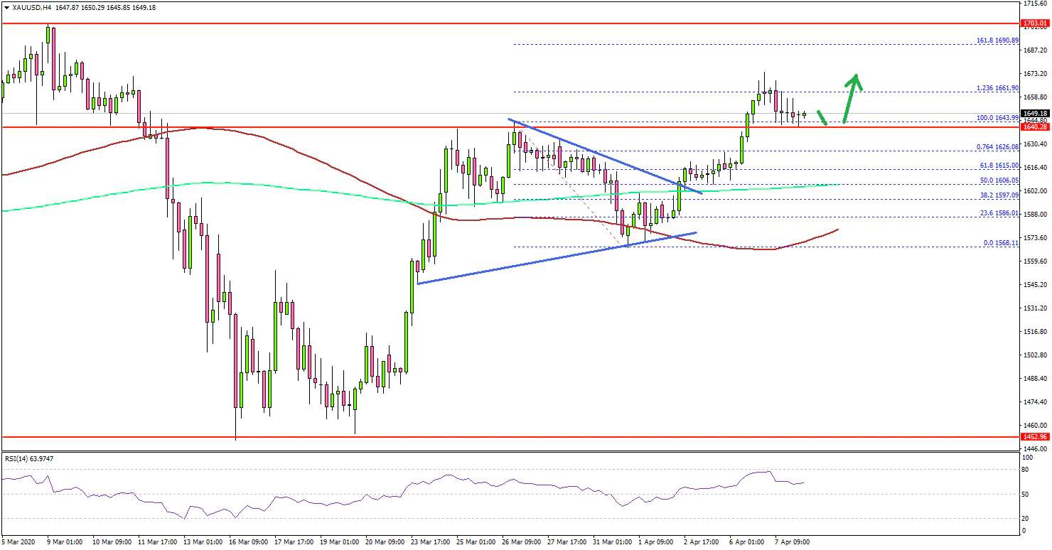 In the past few days, gold price regained bullish momentum above the $1,600 pivot level against the US Dollar. The price broke the $1,620 and $1,640 resistance levels to move into the positive zone.