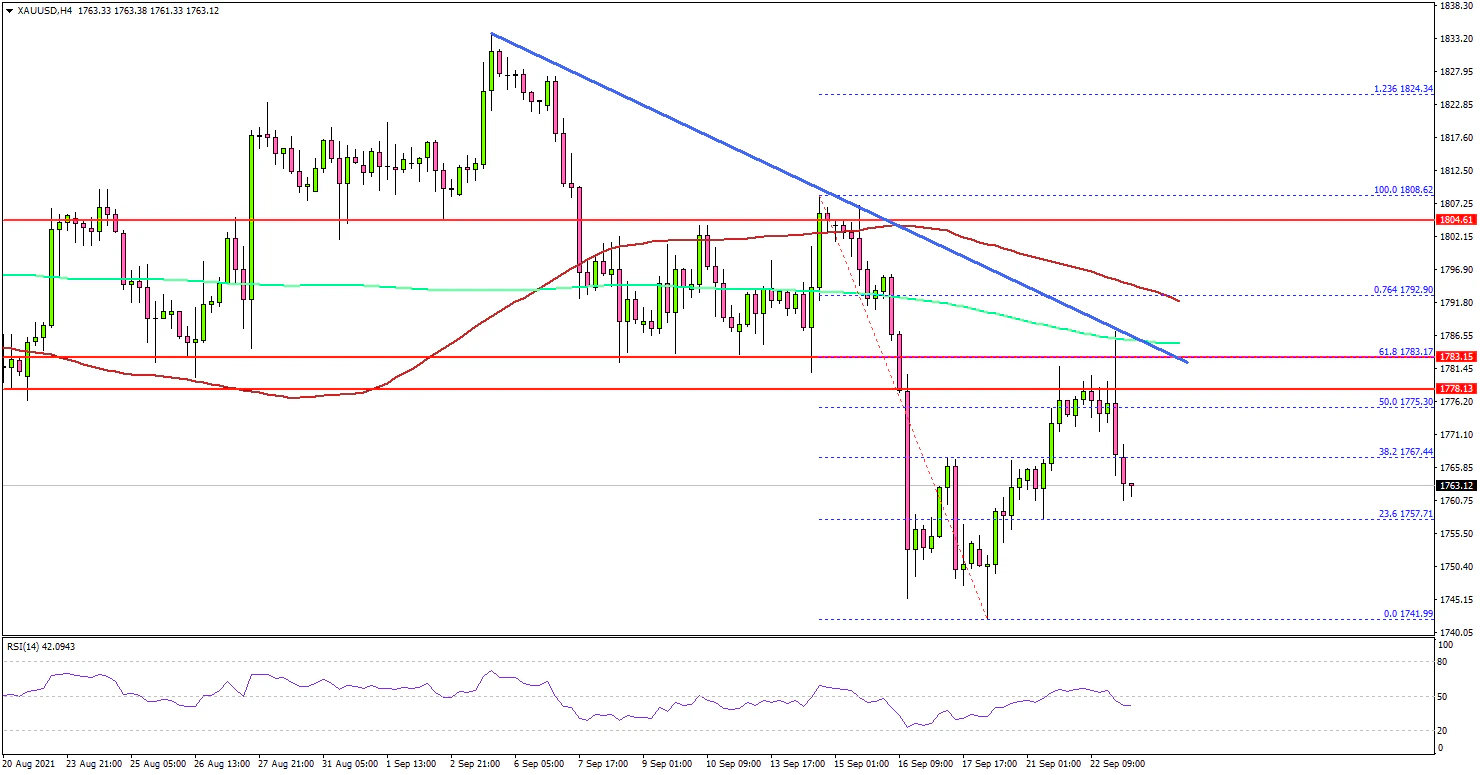 The price traded as low $1,741 and recently started an upside correction. The price corrected above the $1,765 and $1,770 levels.