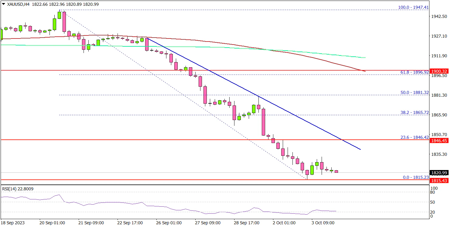 The decline was even extended below the $1,840 level. A low was formed near $1,815 and the price is now consolidating losses. On the upside, the price is facing resistance near the $1,832 and $1,835 levels.