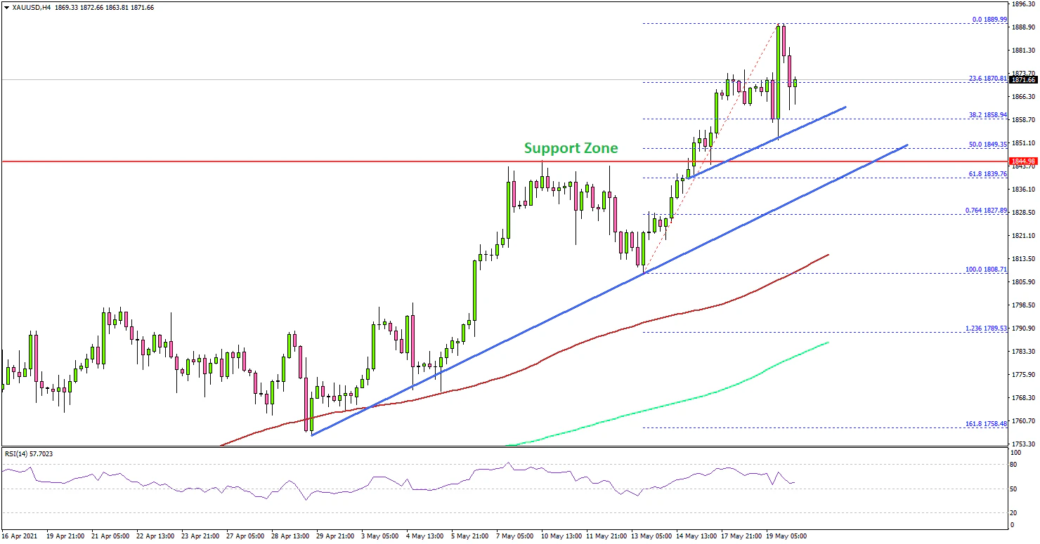 The upward move gained pace above the $1,865 resistance. The price even broke the $1,880 level. The current price action suggests that the price might continue to rise above the $1,900 level. The next major resistance sits near the $1,940 level.