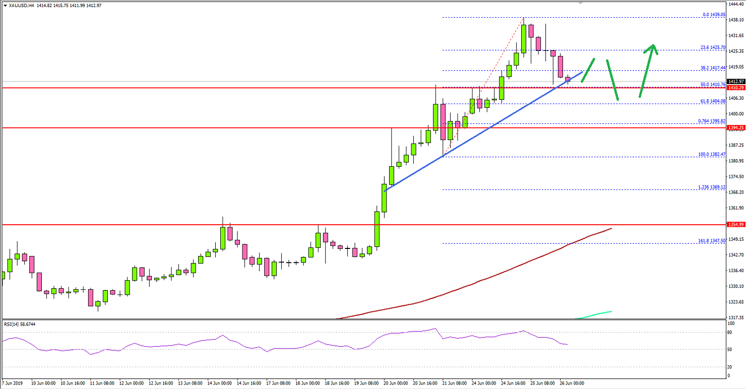 After a successful close above the $1,400 resistance, gold price accelerated gains against the US Dollar. The price even broke the $1,420 resistance and traded close to $1,440 before correcting lower.