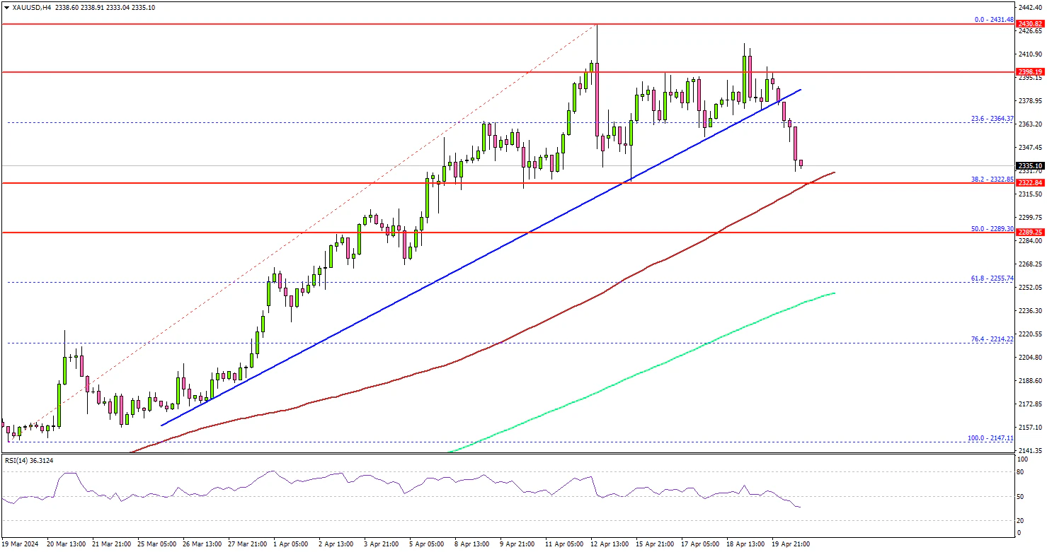 • A key bullish trend line is forming with support at $2,395 on the 4-hour chart.
