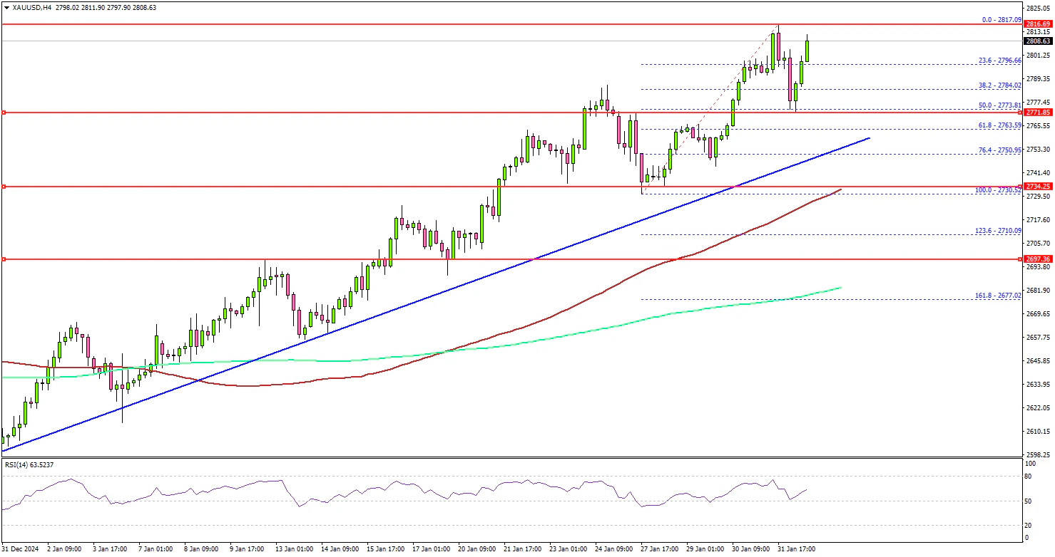 The current price action is bullish and indicates chances of more upsides. On the upside, immediate resistance is near the $2,820 level. The next major resistance sits near the $2,832 level.