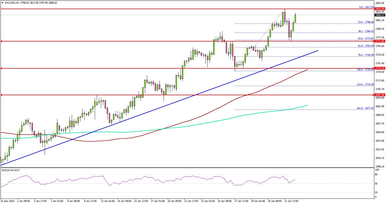 Gold prices started a fresh increase amid Trump’s trade war. The price gained pace and remained in an uptrend above the $2,780 resistance.