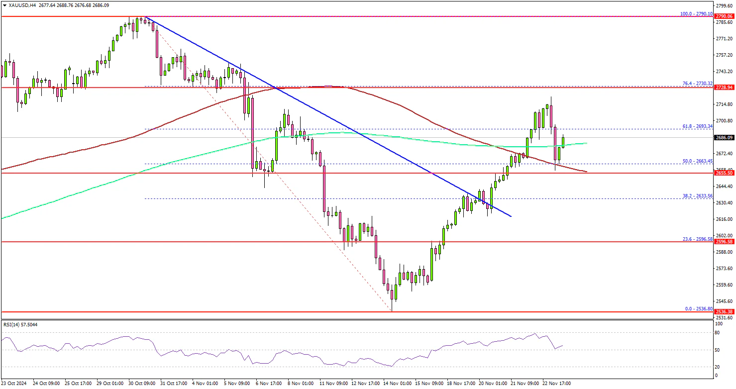 The next major resistance could be $2,750, above which the price could rally toward the $2,780 level. On the downside, initial support is near the $2,660. The first major support is near the $2,620 level.