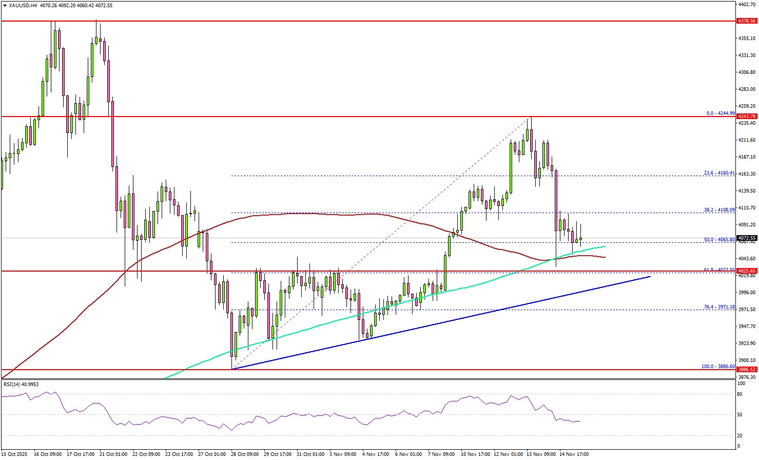 Gold prices corrected some gains and traded below $4,200 against the US Dollar. It traded below the $4,150 pivot level to enter a consolidation phase.