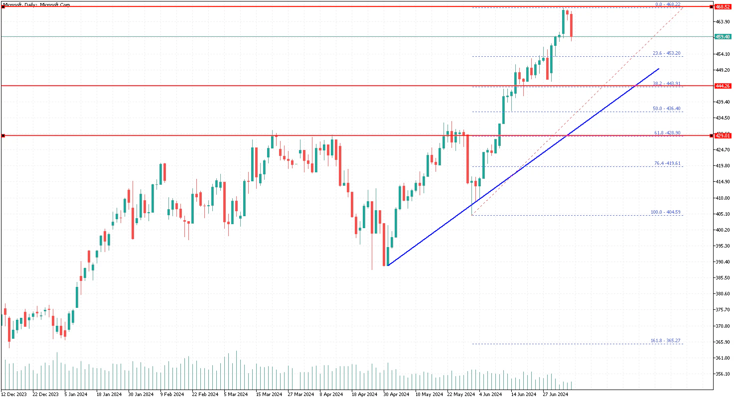 - Microsoft’s stock price climbed to a new all-time high at $468.29 on TitanFX.