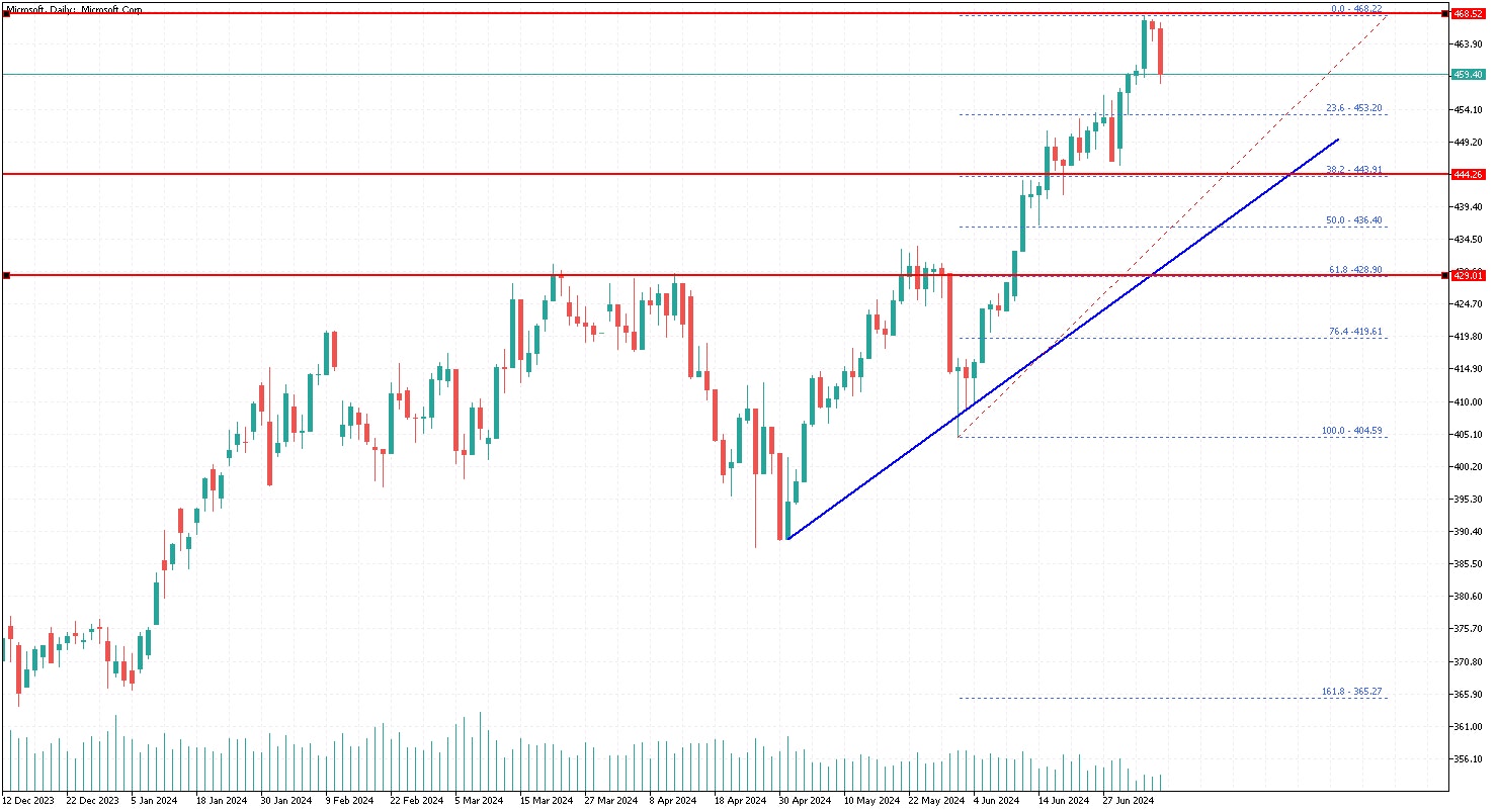 In the past few weeks, we saw a strong increase in Microsoft’s stock price (NASDAQ: MSFT) above the $400 level. The bulls remained active, and the uptrend extended above $440.