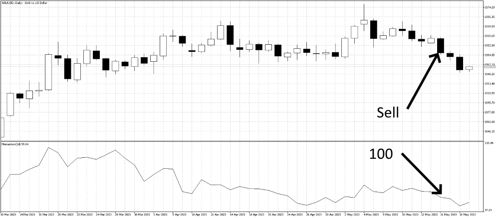 Momentum Crossovers: Another way to interpret the momentum indicator is through crossovers. A bullish crossover occurs when the momentum line crosses above the centerline (100), suggesting upward momentum is increasing. This is a potential signal to enter long positions or add to existing ones. Conversely, a bearish crossover occurs when the momentum line crosses below the centerline, indicating increasing downward momentum and potentially signaling opportunities to enter short positions or tighten stop-loss levels.