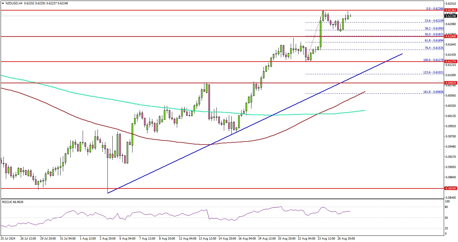 On the upside, the pair could face resistance near the 0.6235 level. The first key resistance sits near the 0.6250 level. A clear move above the 0.6250 level could set the pace for a move toward the 0.6320 level.
