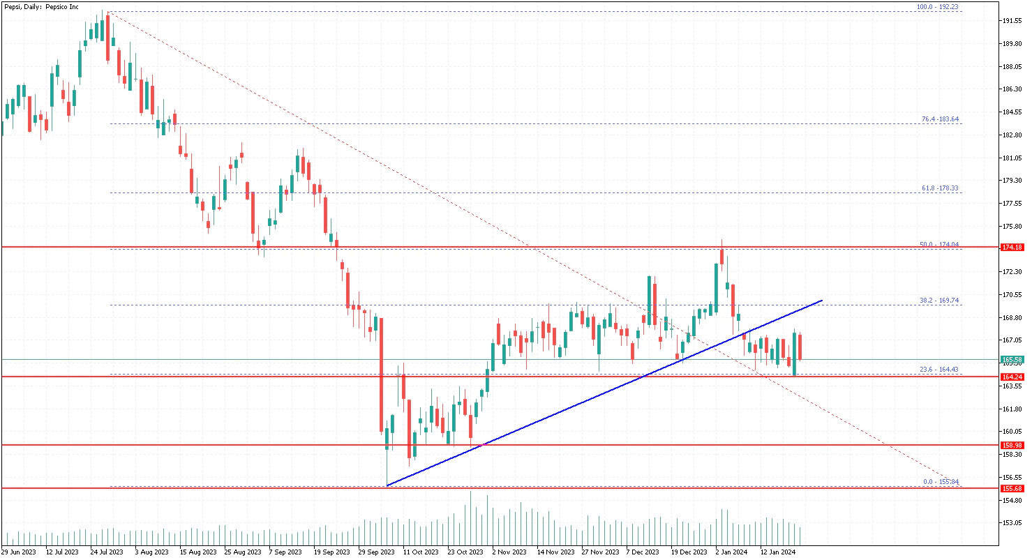 Looking at the daily chart of PepsiCo stock, there was a decent move above the $165 level. The price even climbed above the 38.2% Fib retracement level of the downward move from the $192 swing high to the $155 low.