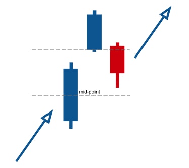 The middle downside candlestick shows that bears attempted to push prices down, but the bulls regained control and pushed the price back up to stay within the body of the first candle. This pattern is often seen as a sign of bullish continuation, with traders looking to buy into the market as the attempt to reverse the price direction has failed.