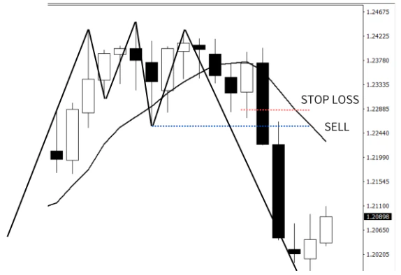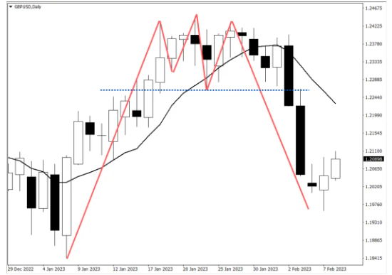 Below is a triple top pattern in the GBPUSD. As you can see the three highs are close but not exactly the same level. Chart analysis is not a perfect science and judgement is required by the trader to whether they see a chart pattern. In this situation a strong US employment number was the catalyst for the break of support and large fall.