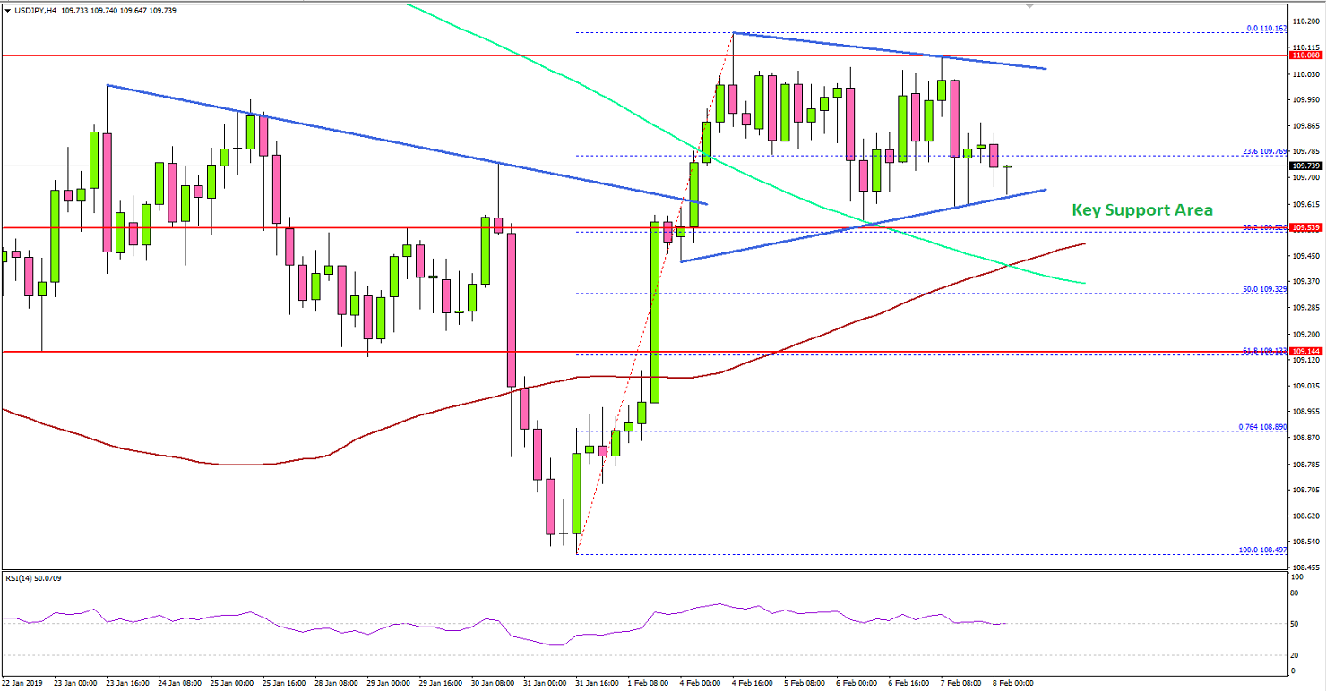 Earlier this week, there was a decent upward move in the US Dollar above 109.50 against the Japanese Yen. The USD/JPY pair traded above the 110.00 resistance before starting a downside correction.