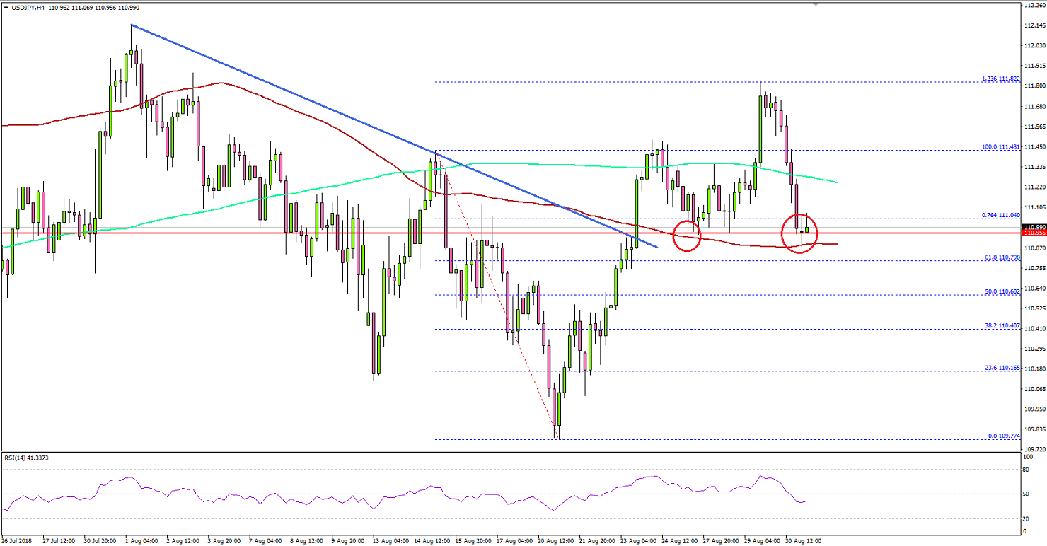 The US Dollar formed a key bottom at 109.77 recently against the Japanese Yen and started an upward move. The USD/JPY pair broke the 110.50 and 110.80 resistances to move into a positive zone.