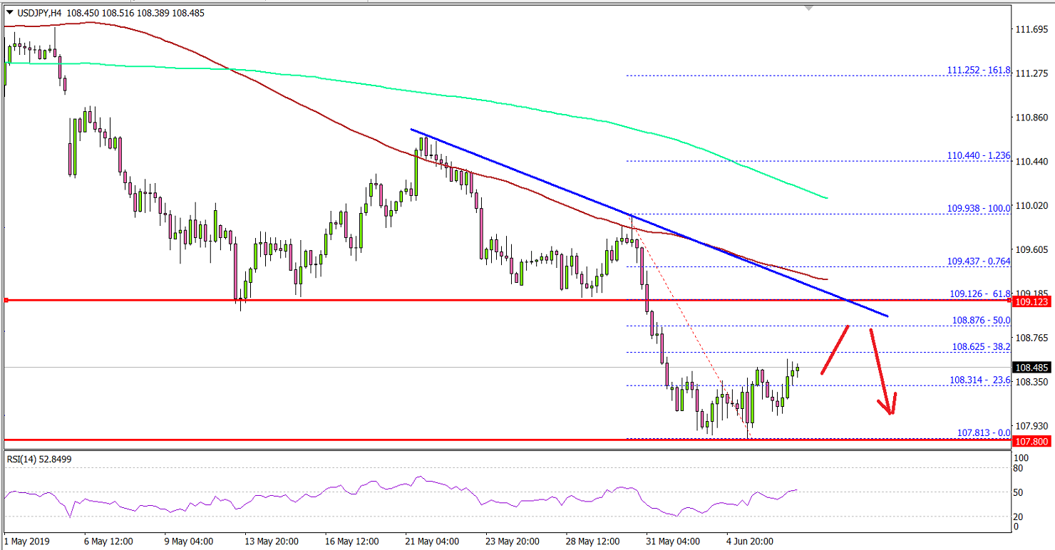 In the past few days, there were steady losses in the US Dollar below 110.00 against the Japanese Yen. The USD/JPY pair remained in the bearish zone and recently settled below the key 109.00 support.