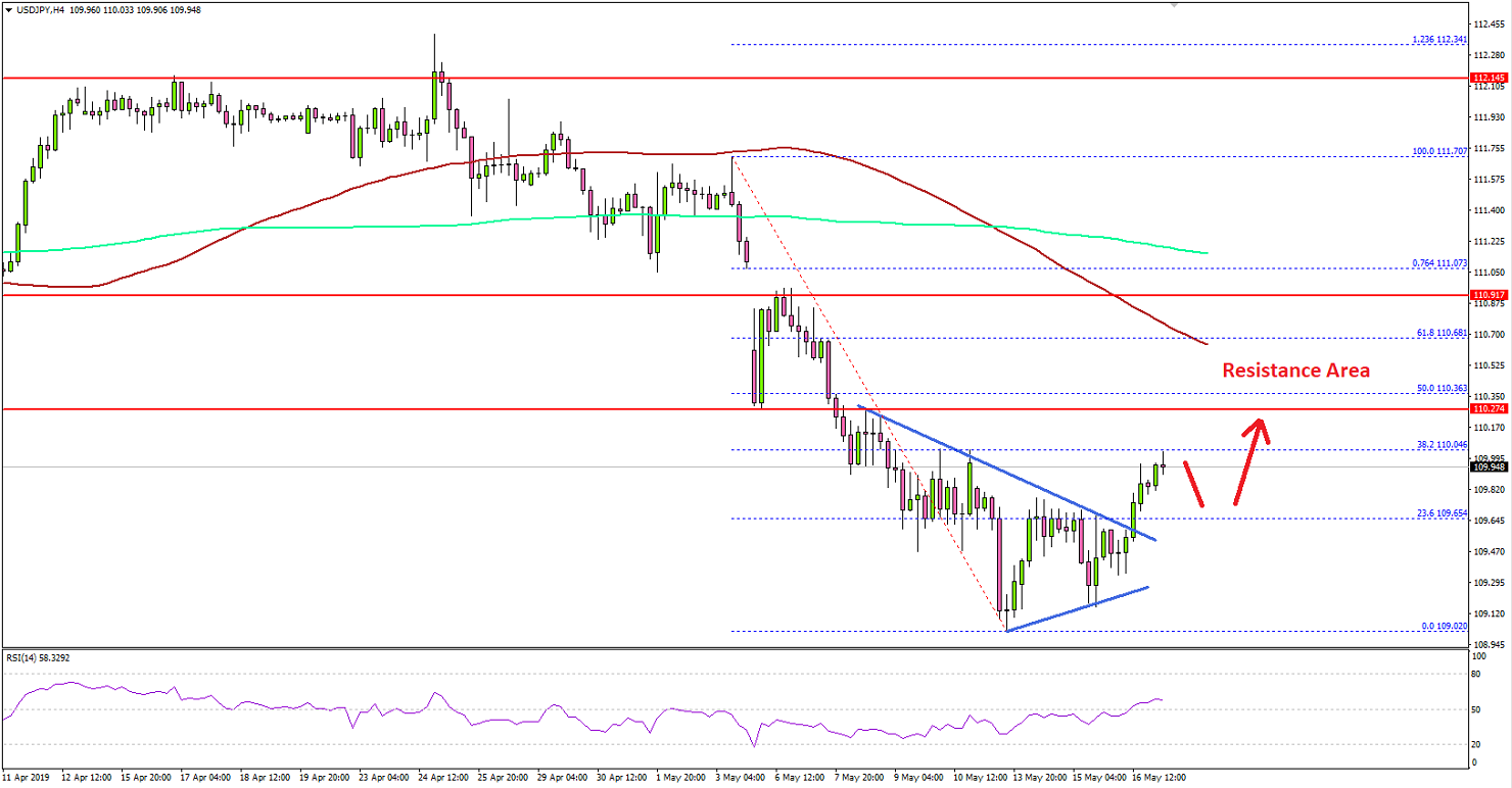 After a strong rejection near 112.00, the US Dollar fell significantly against the Japanese Yen. The USD/JPY pair traded as low as 109.02, and recently started a decent recovery above 109.20 and 109.50.