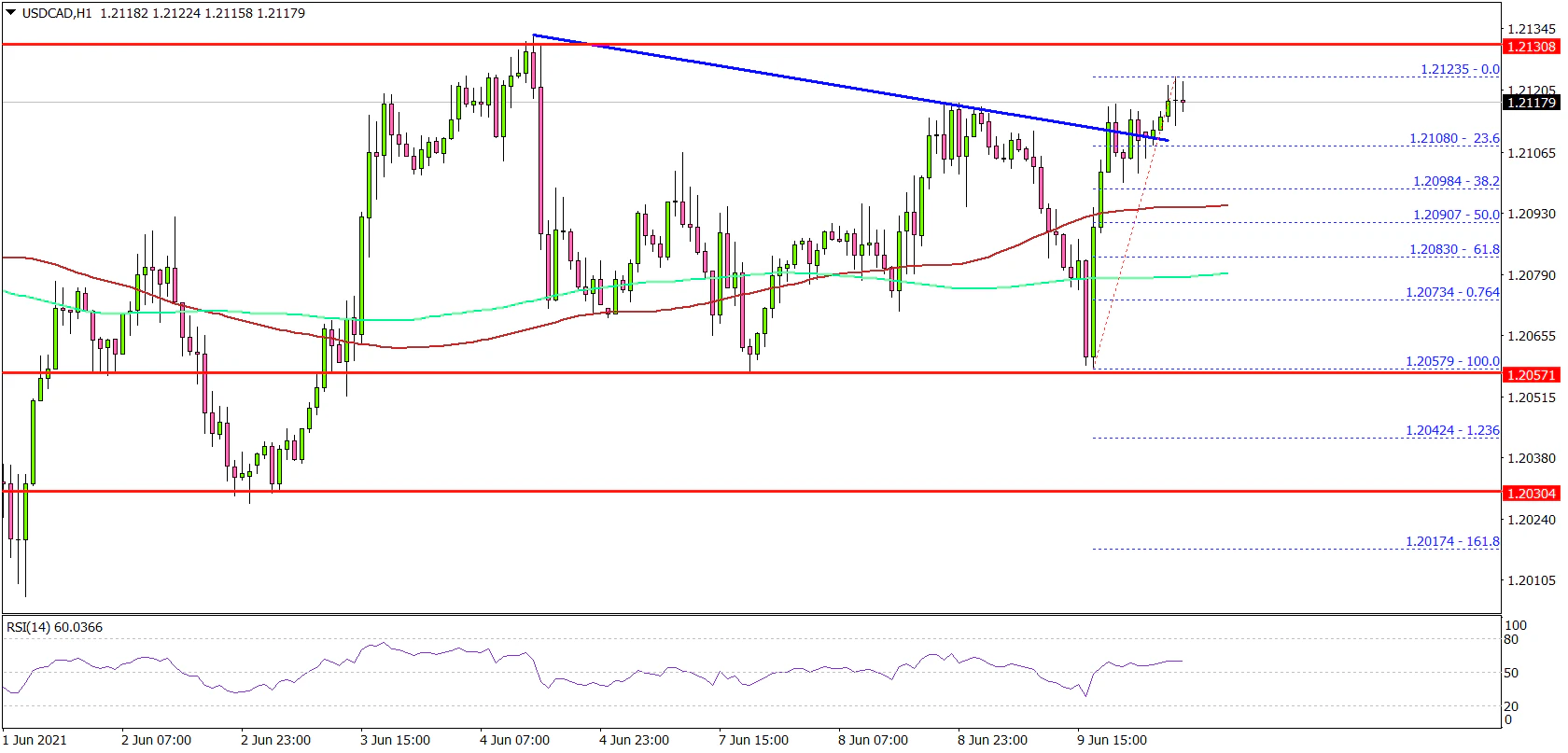 Conversely, the pair could correct lower towards the 1.2080 support. The next major support is near the 1.2060 level, below which the pair could accelerate lower towards the 1.2000 level.