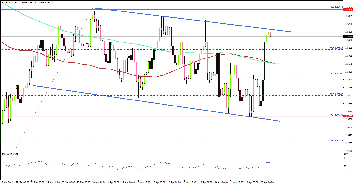 It broke many hurdles near the 1.2550 resistance zone. There was also a close above the 1.2580 level, the 100 simple moving average (red, 4-hours), and the 200 simple moving average (green, 4-hours).