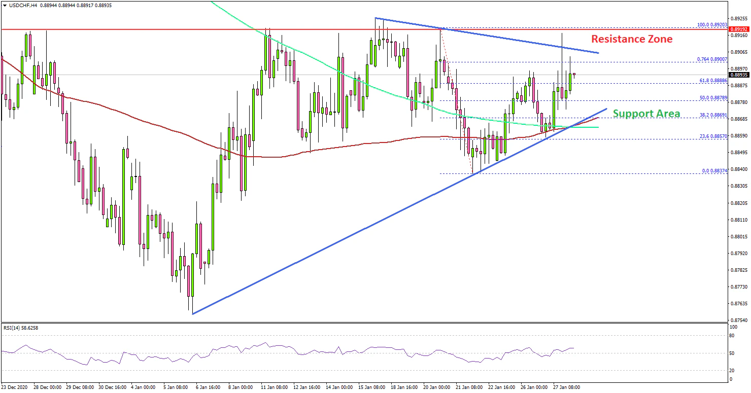 The US Dollar remained well bid above 0.8830 and 0.8840 against the Swiss Franc. USD/CHF started a fresh increase above 0.8865 and it is now facing a strong resistance.