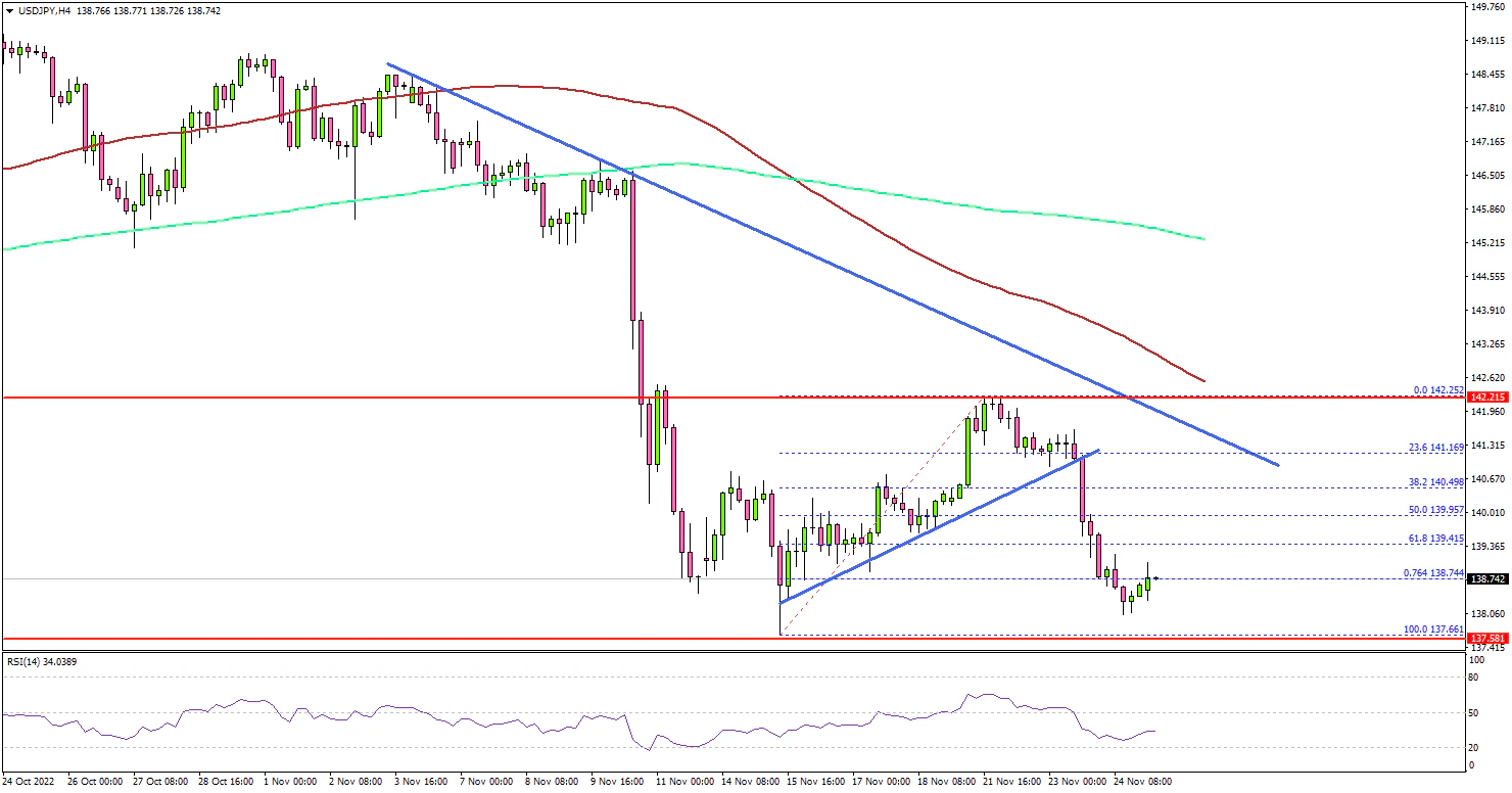 The US Dollar attempted a fresh increase above the 140.00 level against the Japanese Yen. However, USD/JPY failed to clear the 142.25 zone and started another decline.