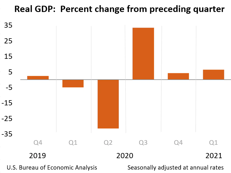 The actual result was similar to the market forecast, as the US real gross domestic product (GDP) increased at an annual rate of 6.4 percent in the first quarter of 2021.