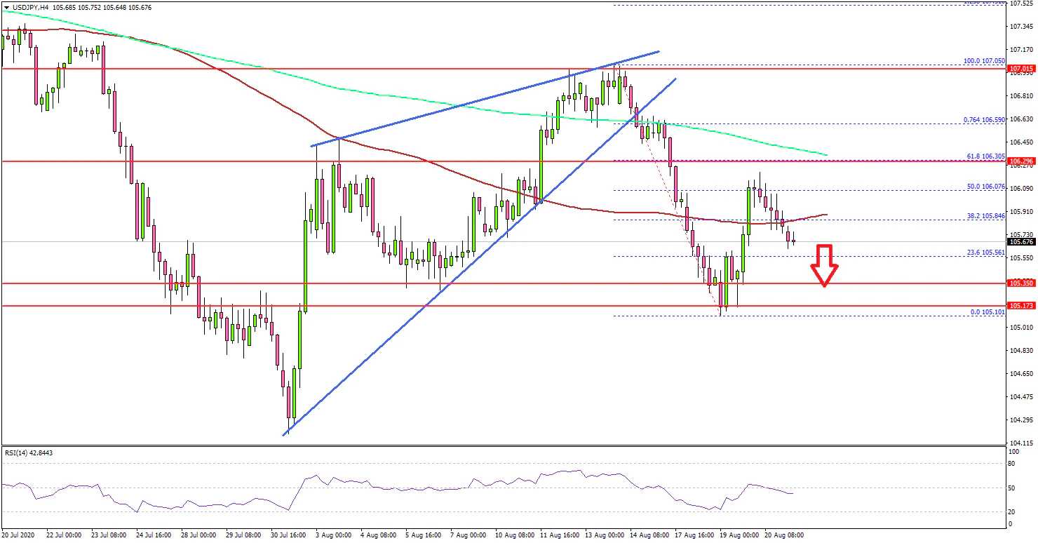 Earlier this week, the US Dollar failed to recover above 106.50 against the Japanese Yen. As a result, USD/JPY started a sharp decline towards the 105.00 support zone.