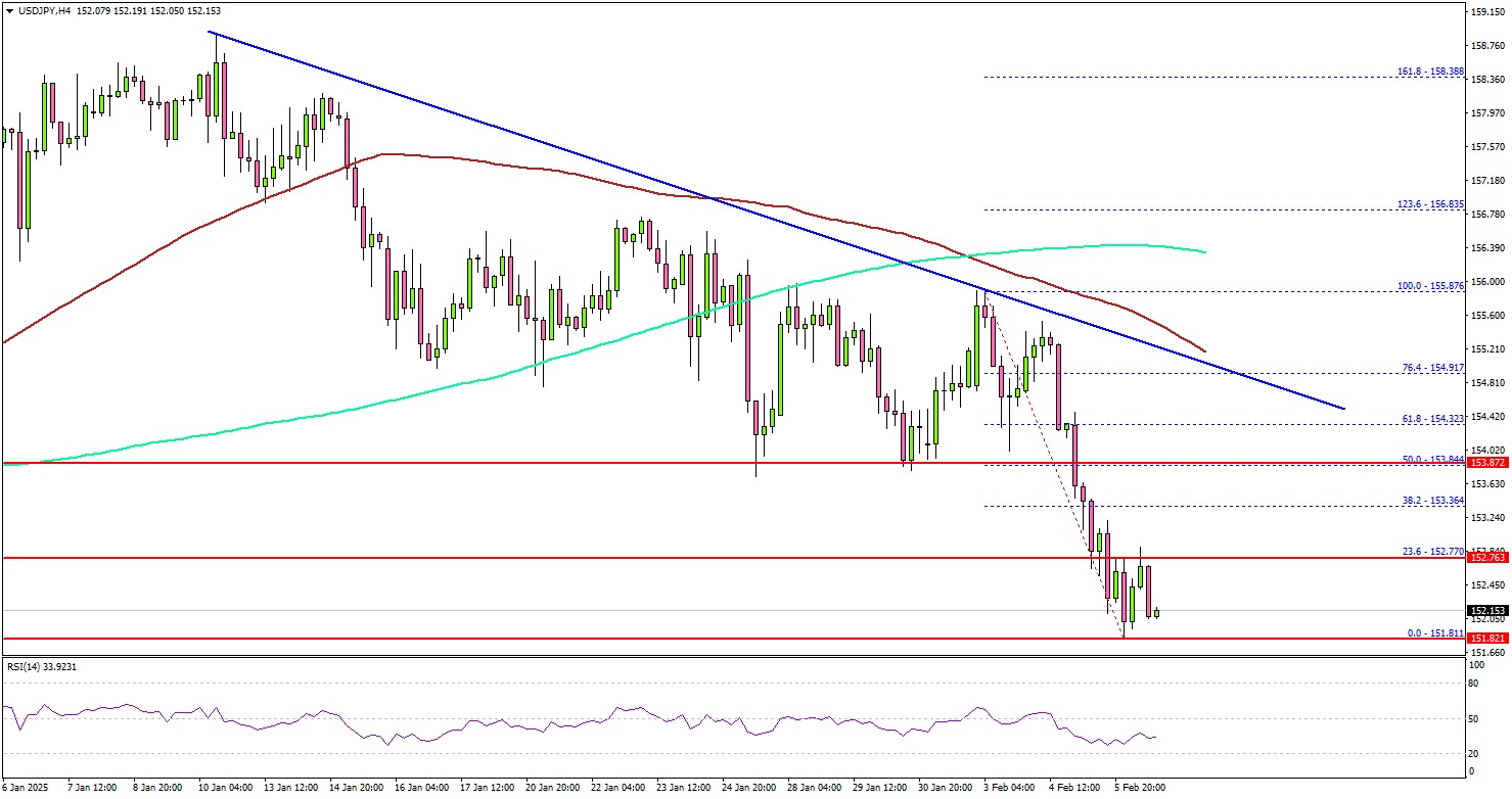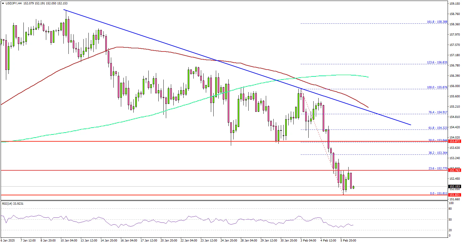 The US Dollar started a fresh decline below 156.20 against the Japanese Yen. USD/JPY declined below 155.50 and 155.00 to enter a short-term bearish zone.