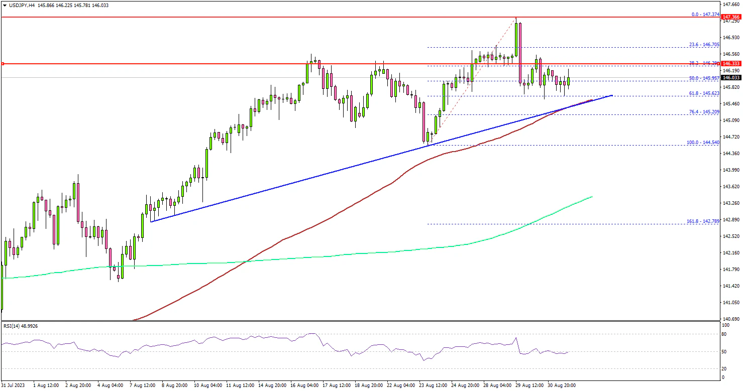 It is now consolidating and might attempt a fresh increase. On the upside, an initial resistance is near the 146.35 level. The first major resistance is near the 146.50 level.