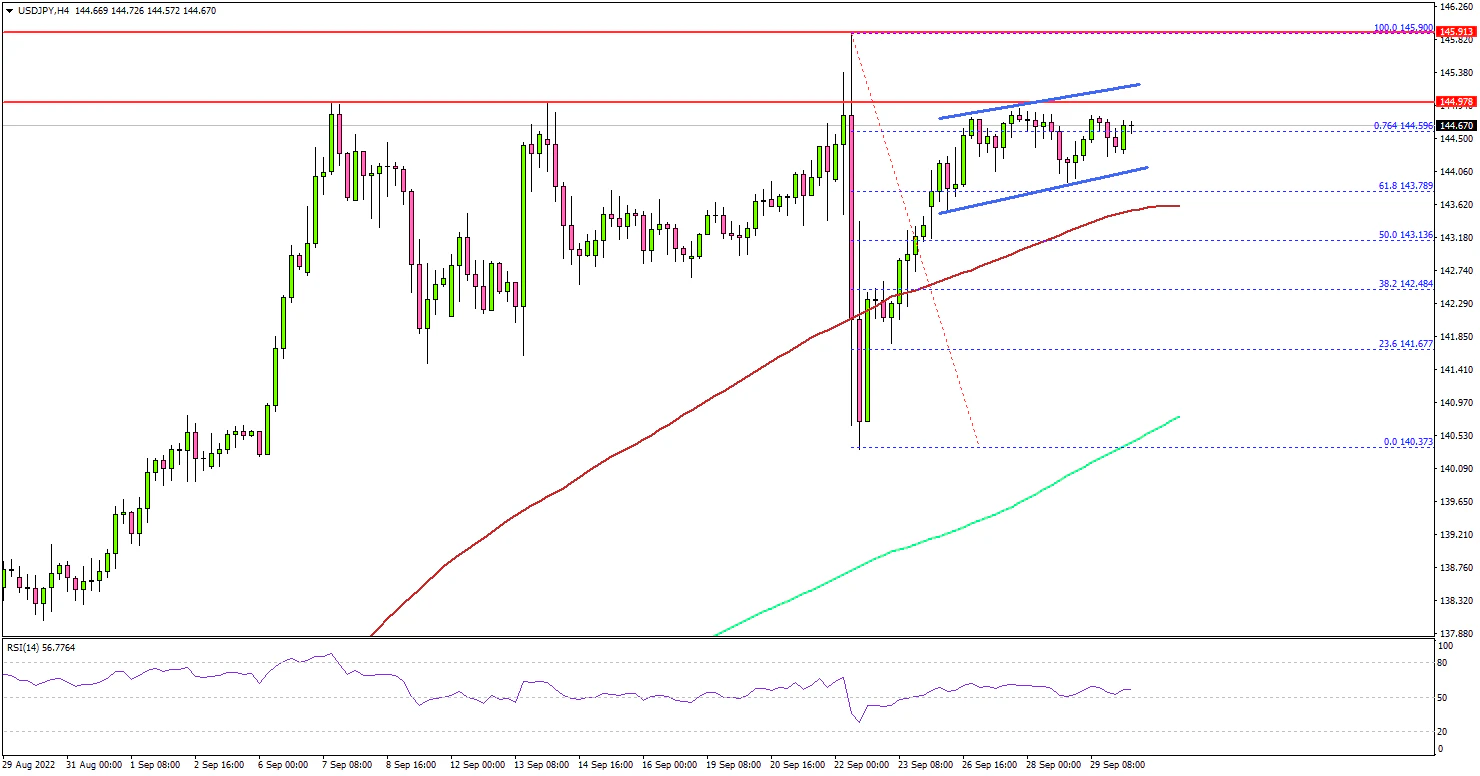 - It is facing a major resistance near 145.00 and 145.40 on the 4-hours chart.