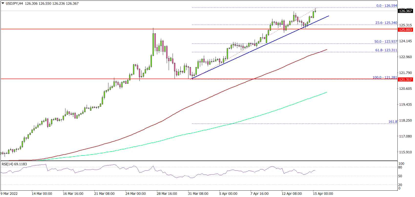 The bulls pumped the pair above the 126.00 level and traded to a new multi-year high at 126.59. It is now showing positive signs and might continue to rise above 126.80. The next major resistance is near the 128.00 level, above which it could rally towards the 130.00 level.
