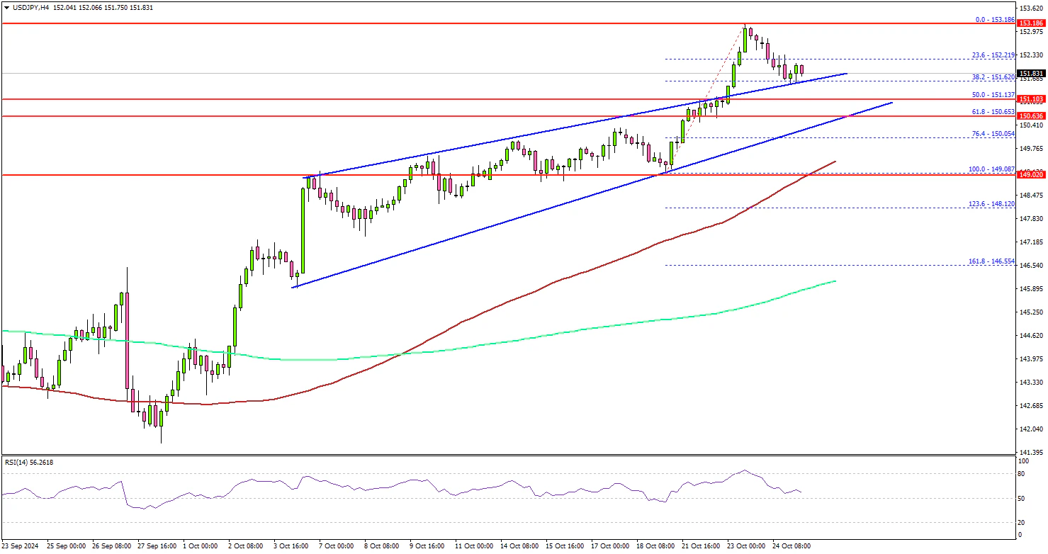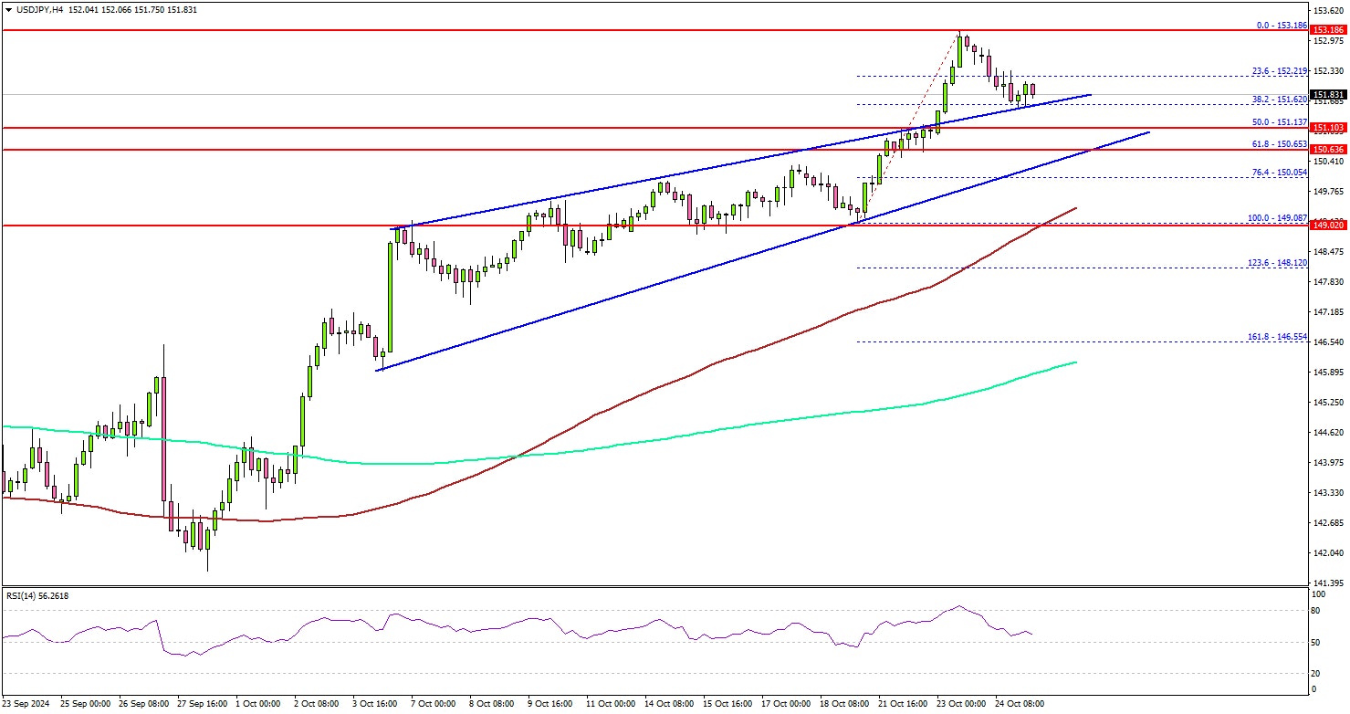 - USD/JPY extended gains above the 152.50 resistance zone.