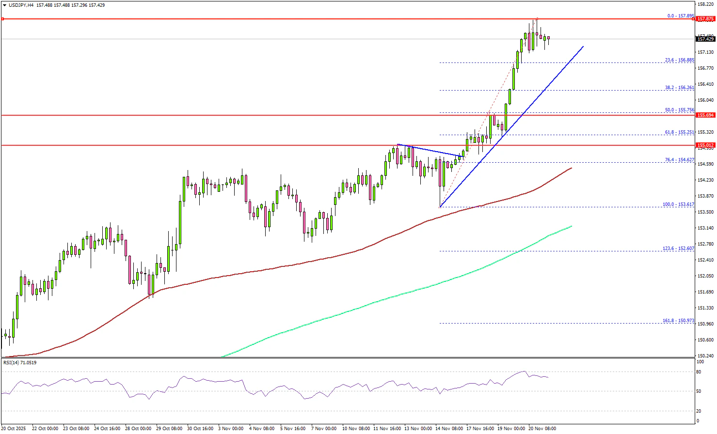 On the upside, the pair faces resistance near the 158.00 zone. The first key hurdle sits at 158.40. A close above 158.40 might send the pair higher toward 159.20.
