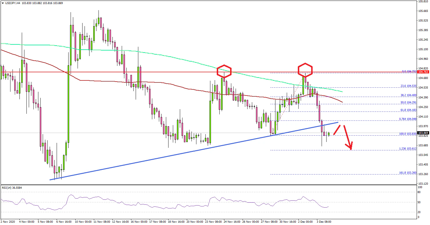 Earlier this week, the US Dollar climbed higher above the 104.50 resistance against the Japanese Yen. However, USD/JPY failed to surpass the 104.80 and 105.00 resistance levels.