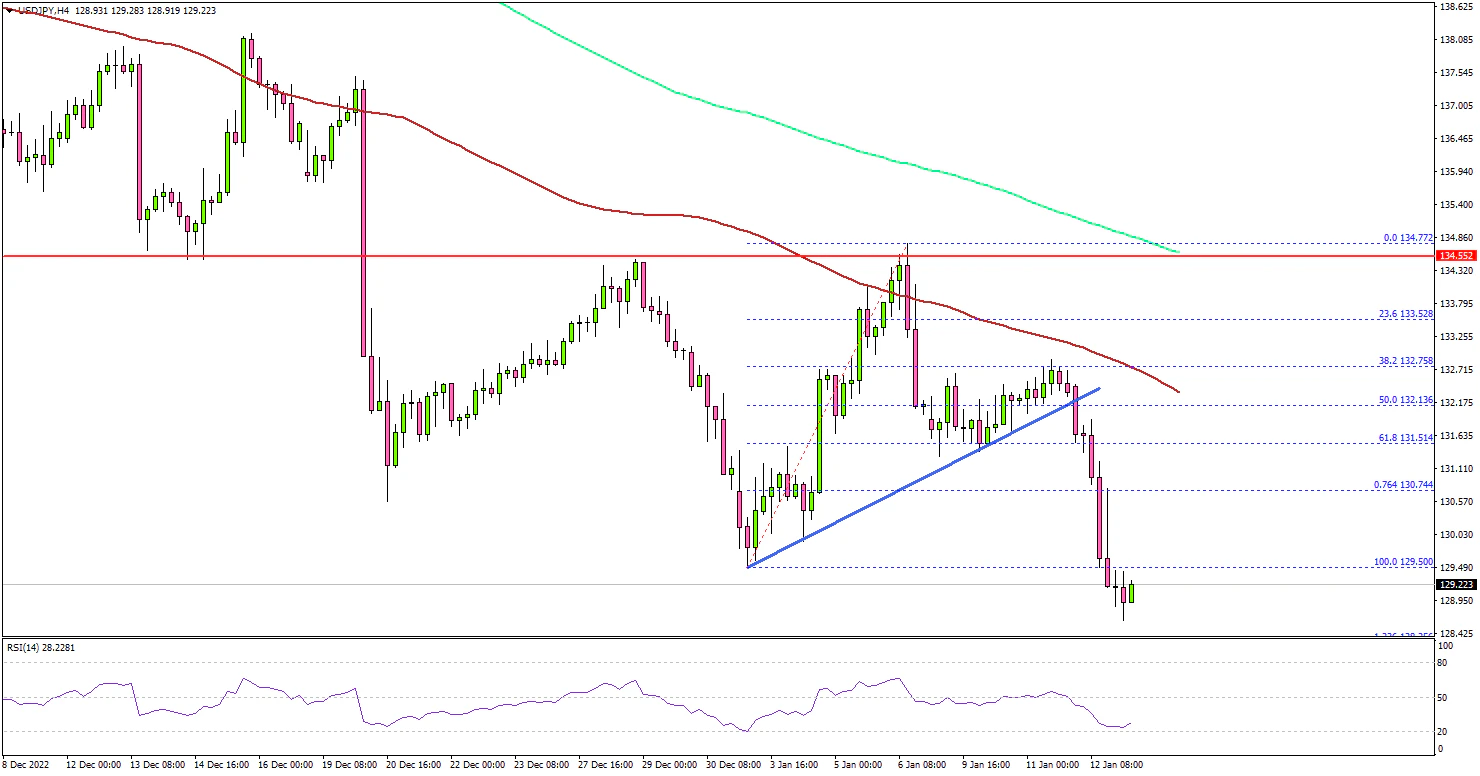 The US Dollar failed again to clear the 134.80 resistance against the Japanese Yen. USD/JPY started a fresh decline and traded below the 133.50 support.