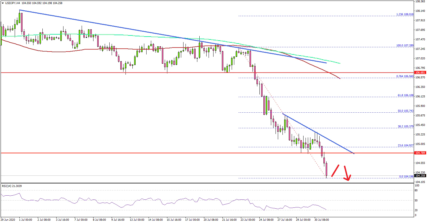 If there is no upside correction, the pair could continue to move down below 104.20 and 104.00. The next major support is near the 103.60, below which the pair might test the 103.20 level.