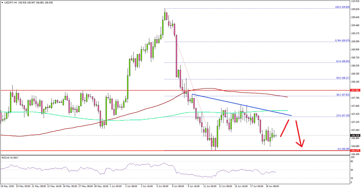 Recently, there was an upside correction above the 107.00 level. The pair climbed above the 23.6% Fib retracement level of the main decline from the 109.84 high to 106.58 low.