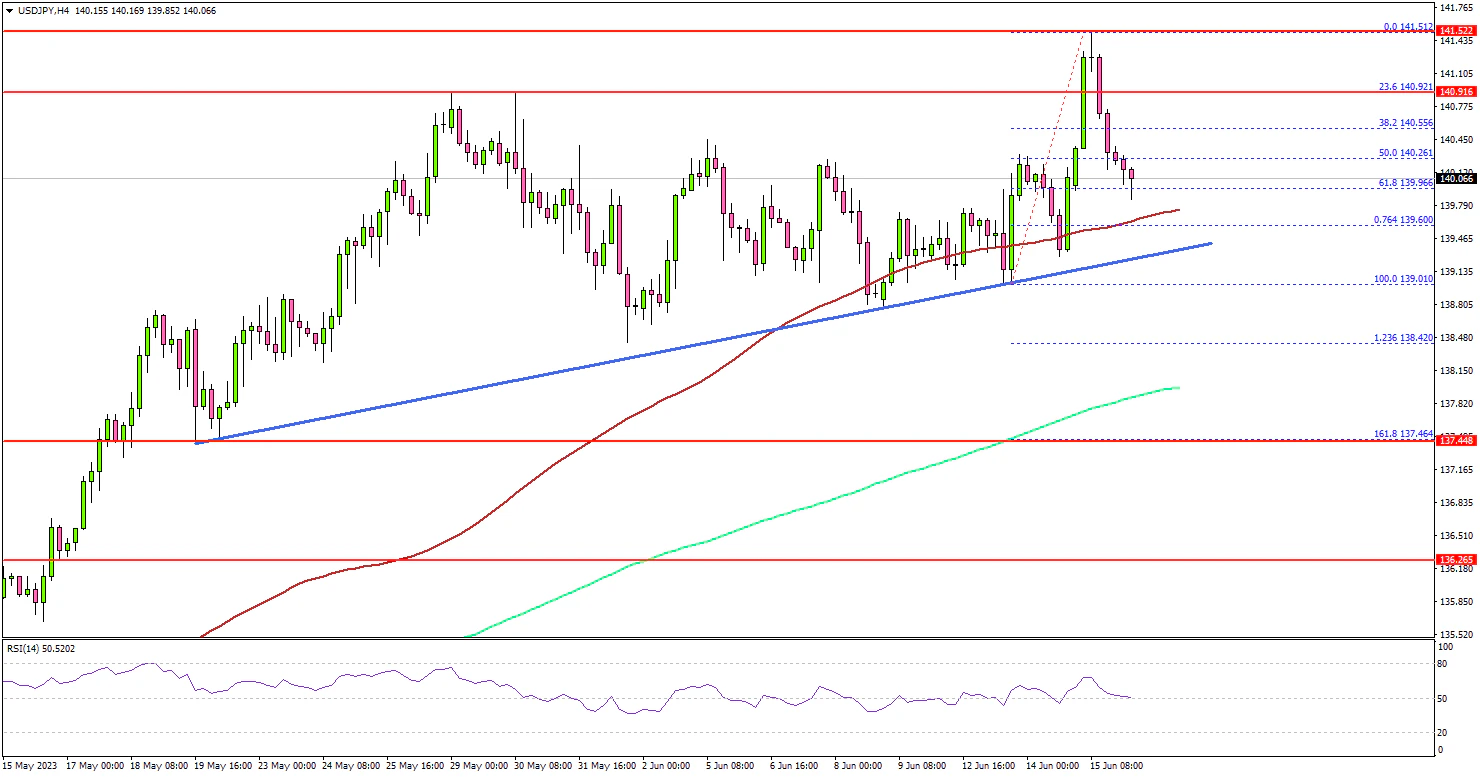 - USD/JPY traded above the 140.00 and 140.50 resistance levels.
