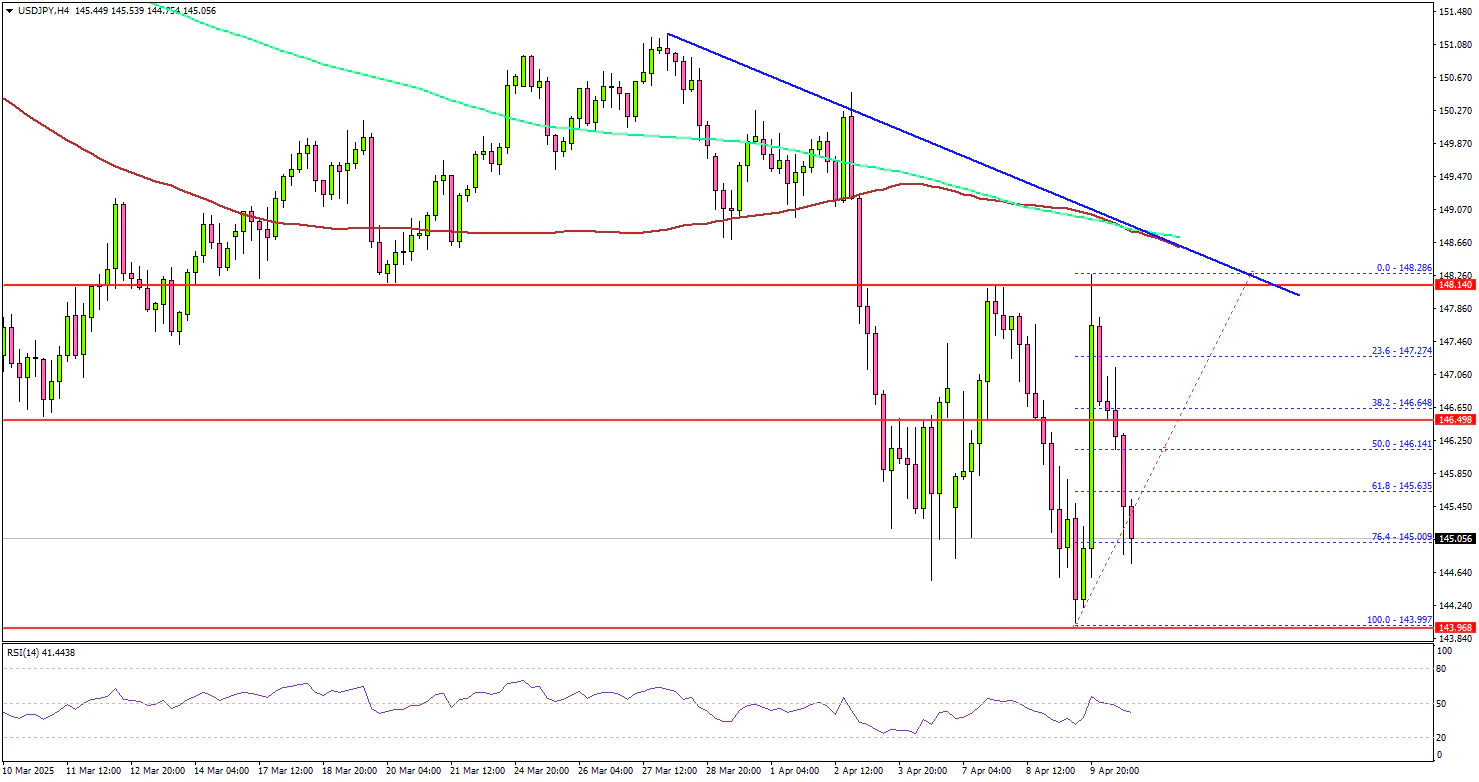 On the downside, immediate support sits near the 144.00 level. The next key support sits near the 143.65 level. Any more losses could send the pair toward the 142.50 level.