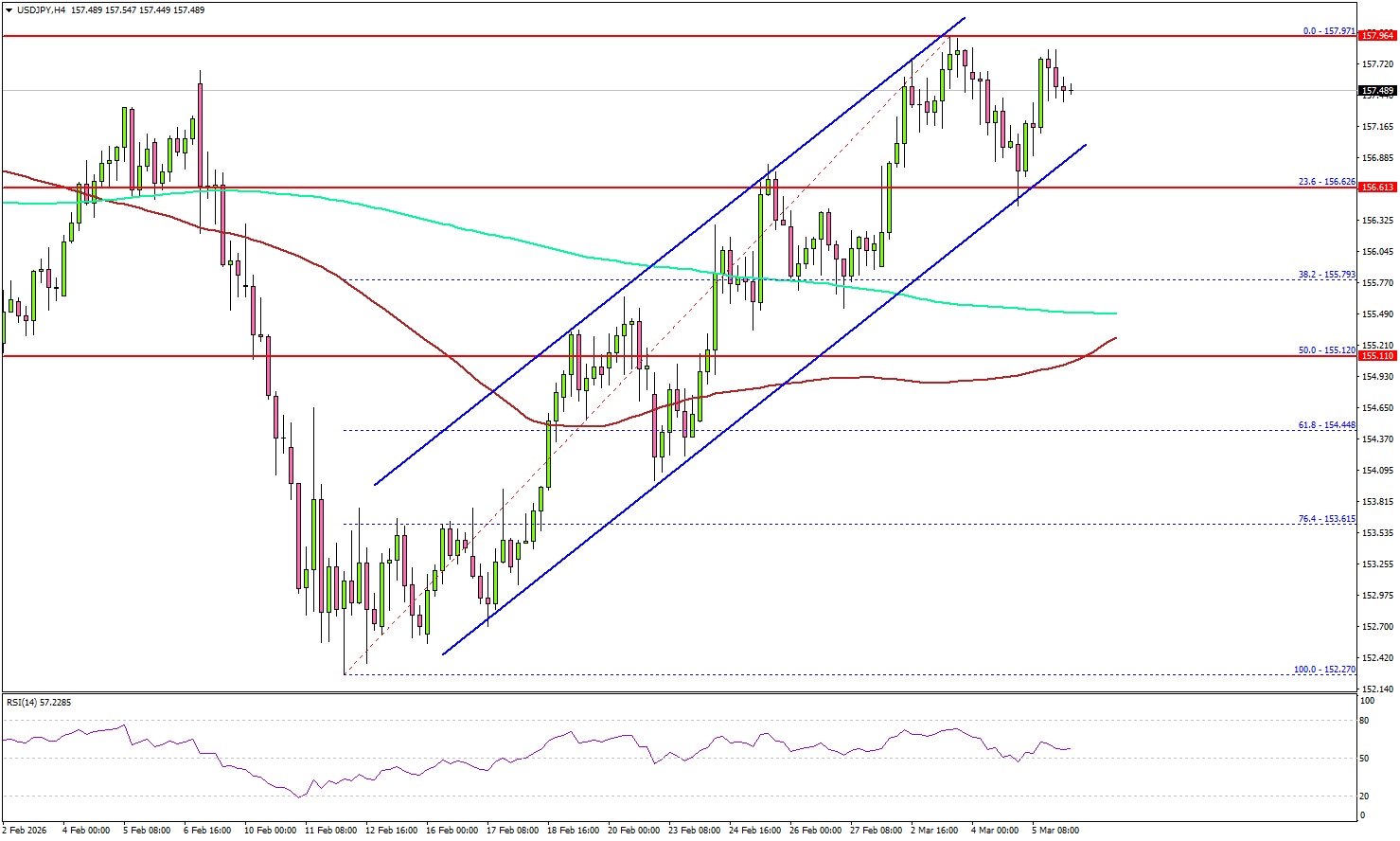 The US Dollar remained supported above 155.00 against the Japanese Yen. USD/JPY extended its increase above 156.50 and 157.20.