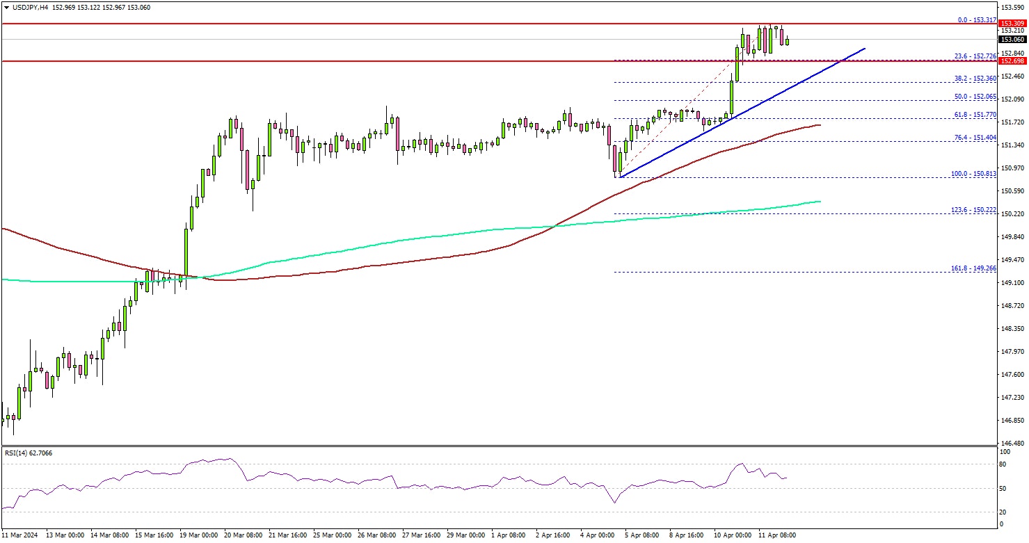 - USD/JPY started another increase and cleared the 152.50 resistance.