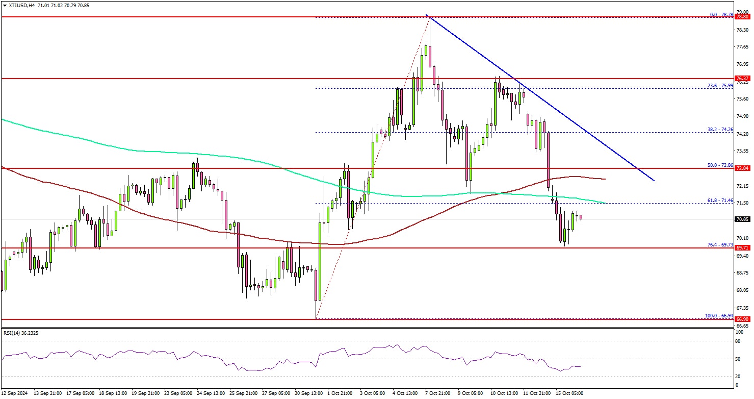 On the downside, the first major support sits near the $68.50 zone. A daily close below $68.50 could open the doors for a larger decline. The next major support is $65.50. Any more losses might send oil prices toward $60.00 in the coming days.