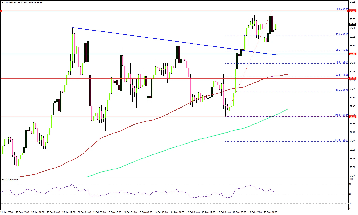 WTI Crude Oil prices started a decent increase above $63.50 against the US Dollar. The price settled above $65.00 to enter a positive zone.