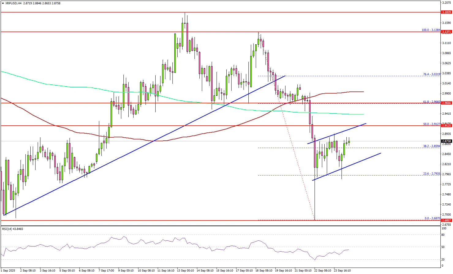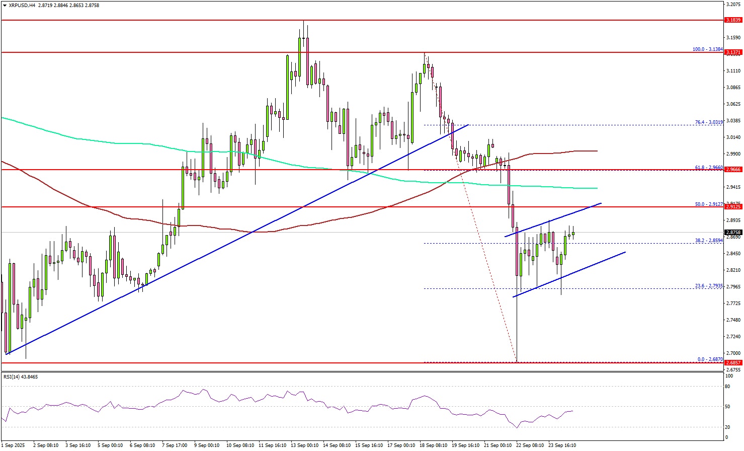 XRP price saw a sharp decline from the $3.120 pivot zone. It tumbled below $3.00 and $2.80 before the bulls took a stand.